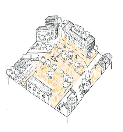 Les illustrations réalisées dans le cadre de ce projet ont pour objectif de rendre accessible le propos aux différents acteurs concernés (grand public, promoteurs, agents communaux…) et le communiquer en réunions de concertation.